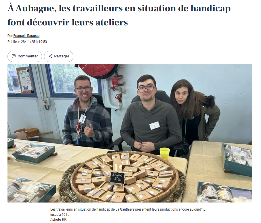 Article de La Provence du 28/11/25 « À Aubagne, les travailleurs en situation de handicap font découvrir leurs ateliers »