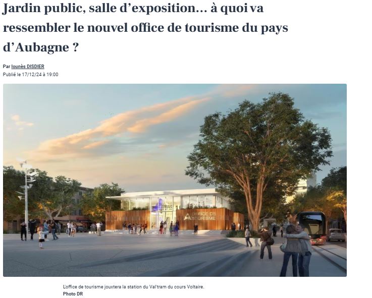 Article de La Provence Publié le 17/12/24 : « Jardin public, salle d’exposition… à quoi va ressembler le nouvel office de tourisme du pays d’Aubagne ? »