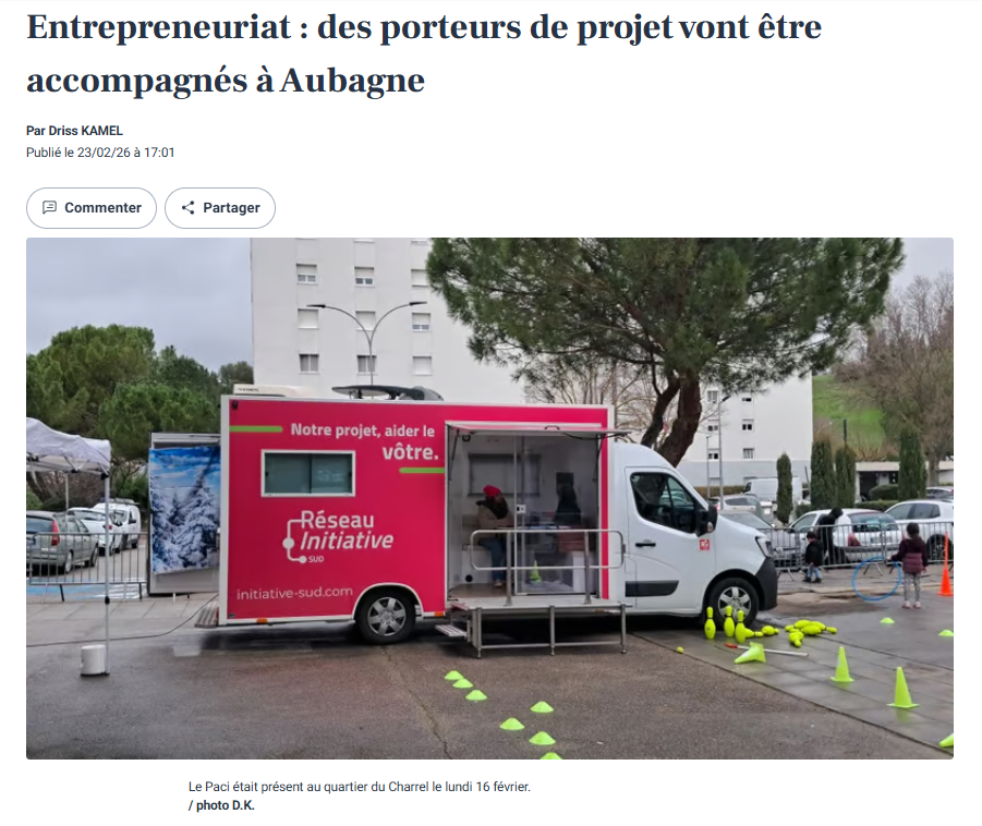 Article de La Provence du 23/02/26: “Entreprenariat : des porteurs de projet vont être accompagnés à Aubagne”