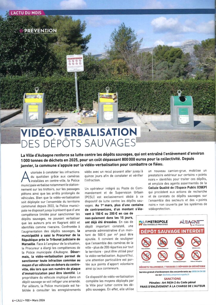 Article de L’AJJ : “Vidéo-verbalisation des dépôts sauvages”