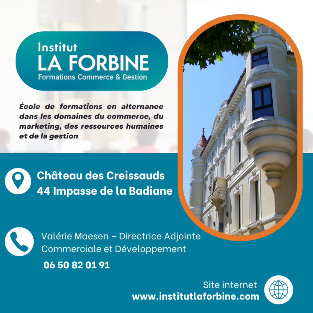 Situé à Aubagne, l’Institut La Forbine propose des formations en alternance dans les domaines du commerce, du marketing, des ressources humaines et de la gestion. Grâce